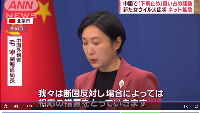 “新たなウイルス症状”ネット拡散で下痢止め買い占め 入国規制には断固反対 中国